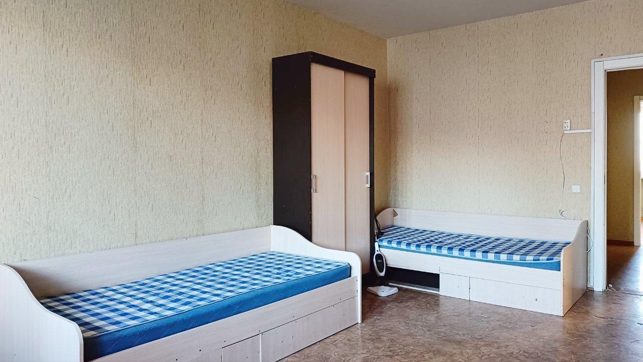Из мебели: две кровати, шкаф, кухонный гарнитур, кухонный стол, табуретки.