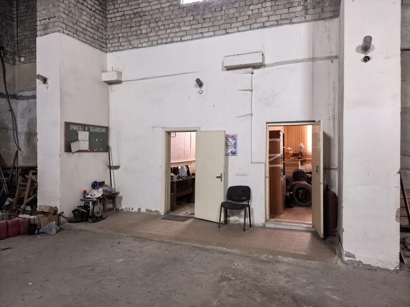 В зданиях несколько помещений: цеха, кабинеты, санузел. Две смотровые ямы. Высота потолков - в первом здании 4.95 м, во втором 6.25 м.