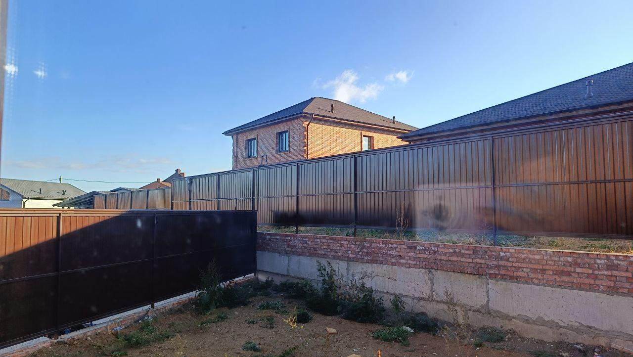 Участок ровный, по периметру забор из профлиста. Во дворе заасфальтирована площадка под автомобиль. Рядом соседи уже делают ремонт.