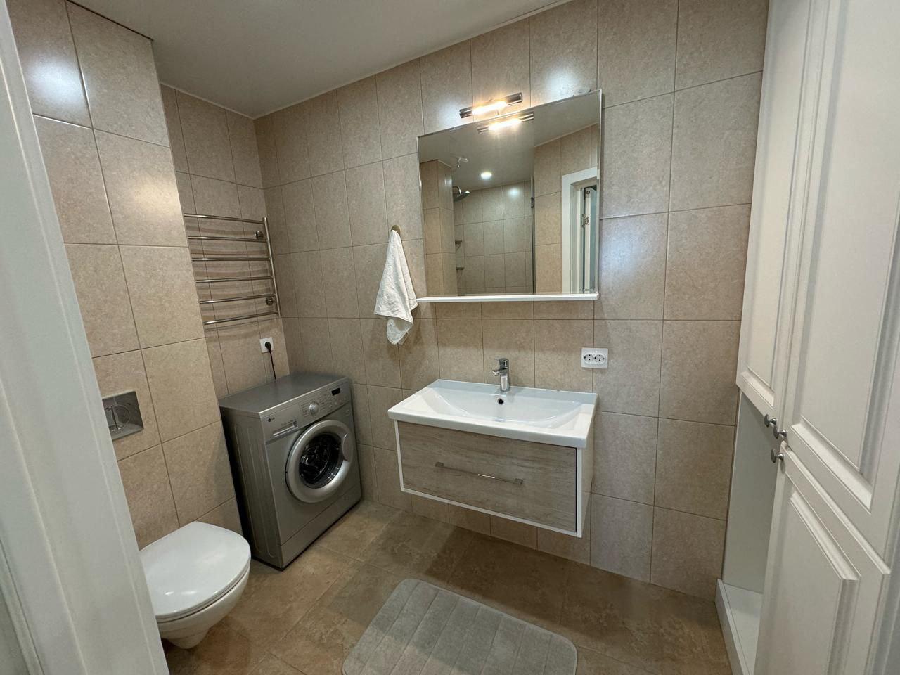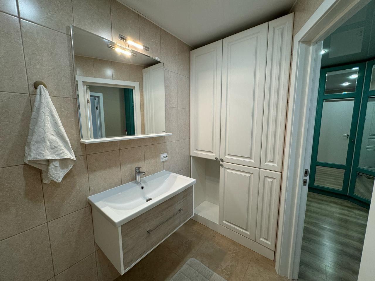 Двухкомнатная квартира с дорогим качественным ремонтом в центре города. Потолки натяжные глянцевые с точечными светильниками, на полу ламинат, в зоне кухне и прихожей - плитка. Из мебели остается почти все, техника вся остается (сплит-система, духовой шкаф, холодильник, микроволновая печь, посудомоечная машина, стиральная машина, сплит-система). Установлена сигнализация.