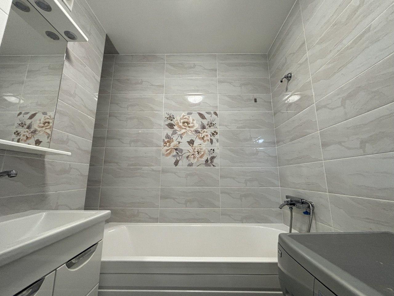 Санузел выложен современным кафелем, оборудован импортной сантехникой, стиральной машиной, водонагревателем.