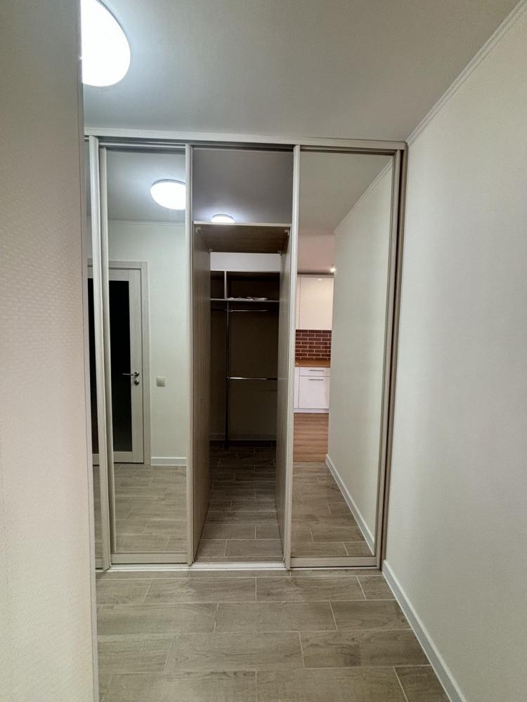 Прихожая оборудована шкафом-купе с зеркальными фасадами, а также вместительной гардеробной комнатой.