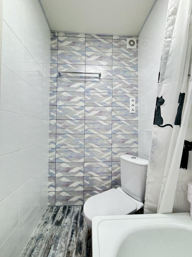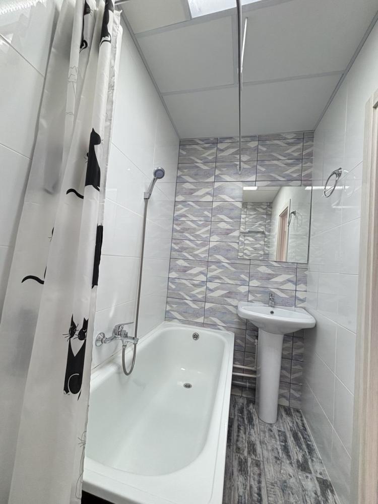 Санузел выложен современным кафелем, оборудован импортной сантехникой, напольное покрытие – керамогранит.