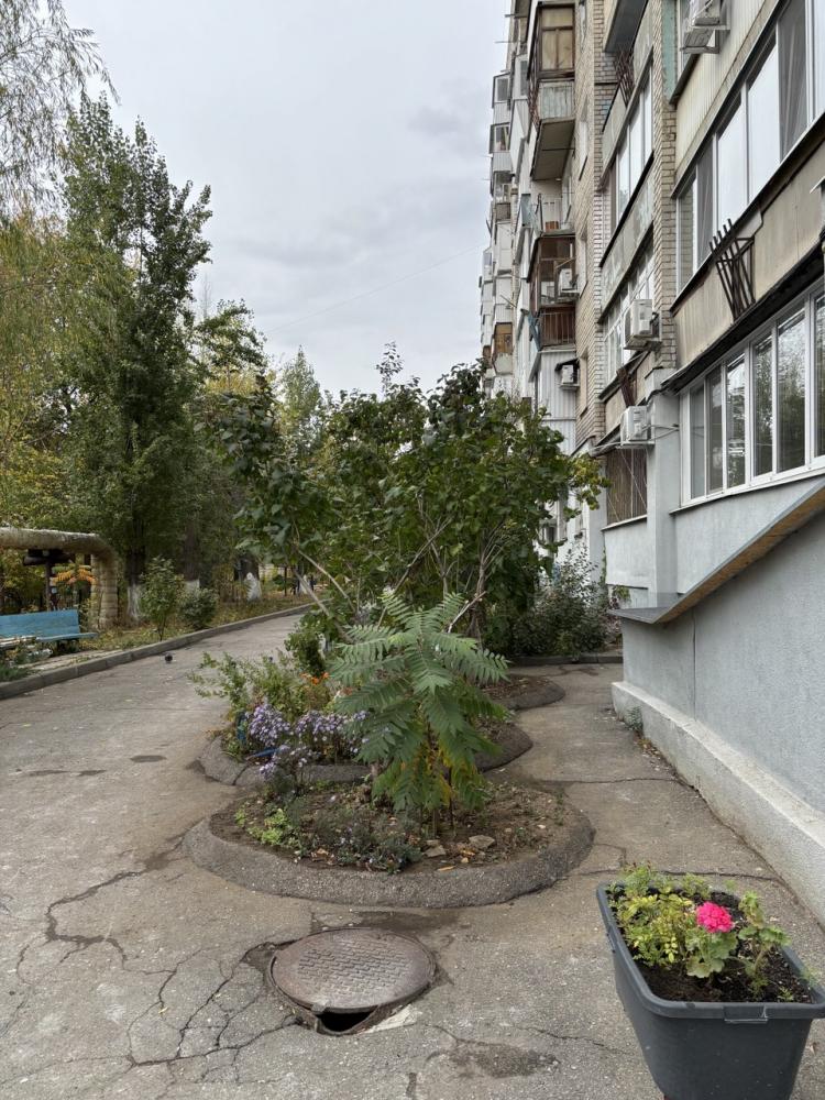 Двор чистый, оборудован зонами отдыха с лавочками, детской площадкой, засажен цветами и деревьями.