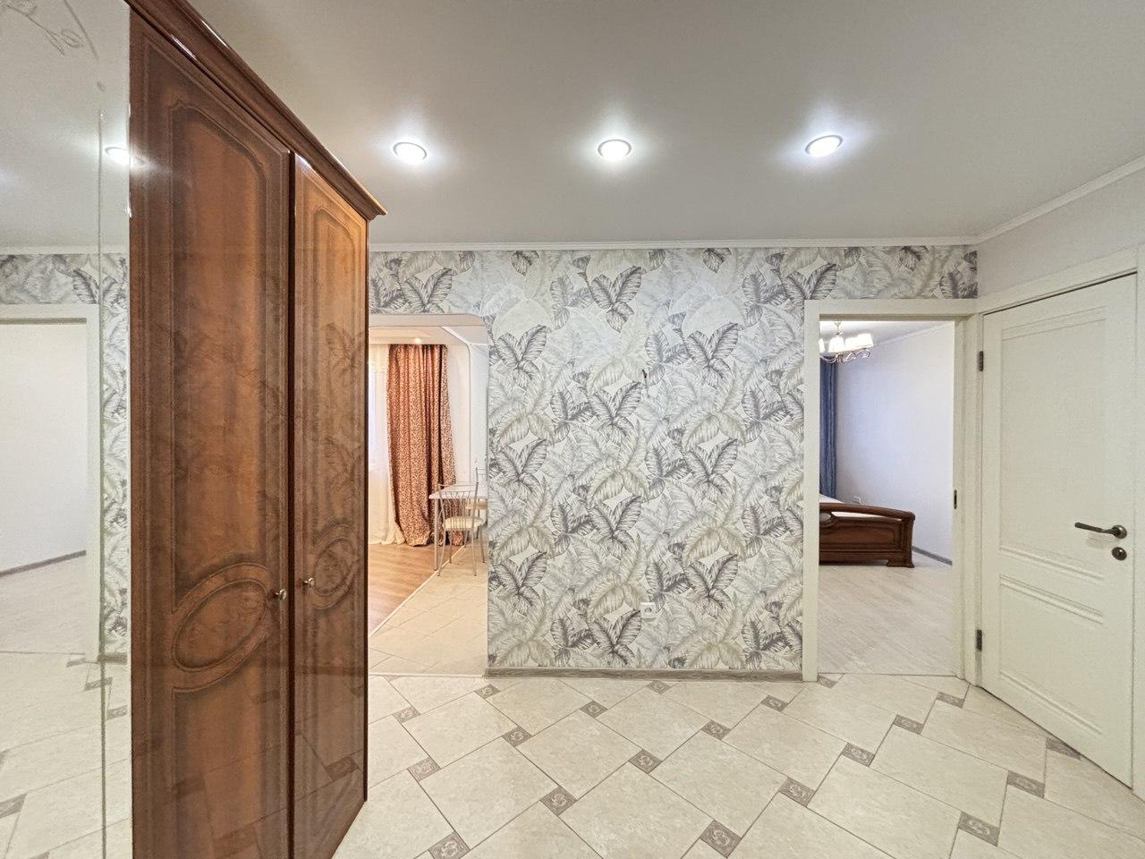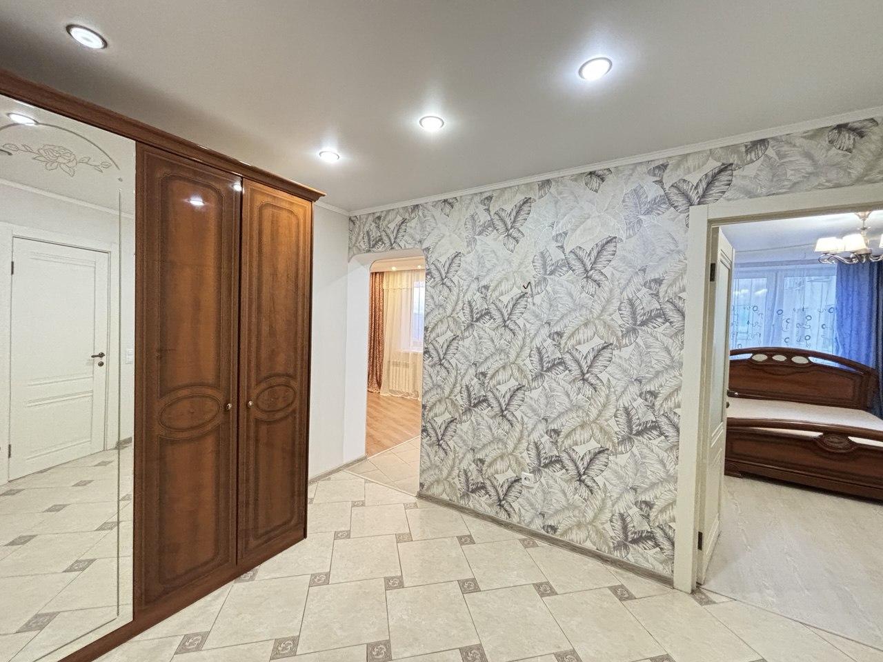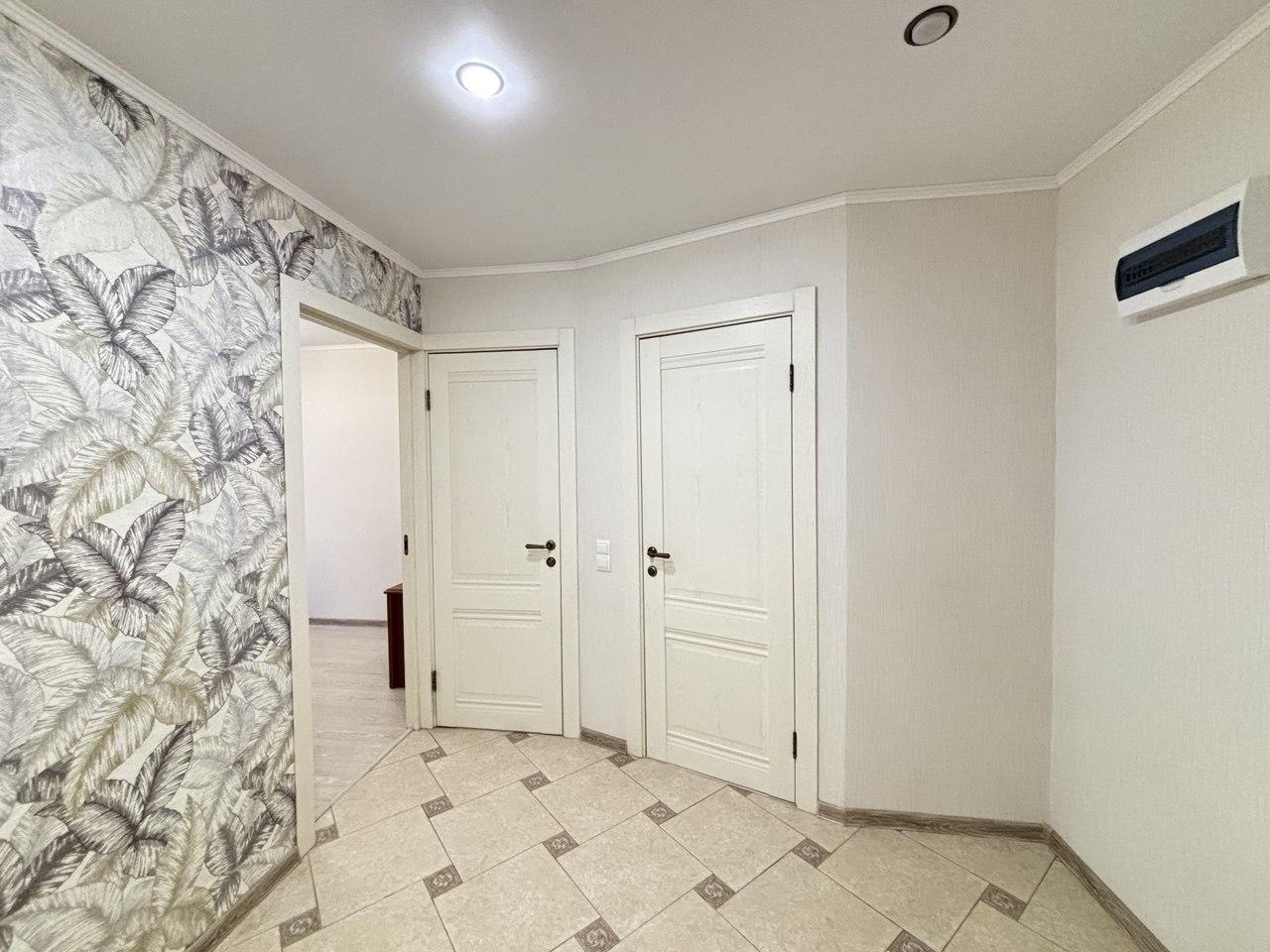Кухня полностью оборудована встроенной мебелью и бытовой техникой (вытяжка, электрическая варочная панель, электрический духовой шкаф, холодильник, стиральная машина), которая остаётся новому владельцу.