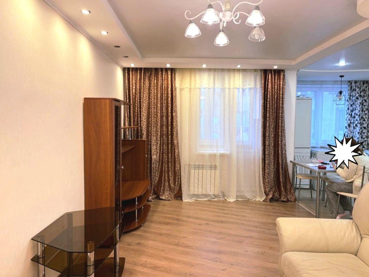 В квартире выполнен качественный дизайнерский ремонт с применением современных строительных материалов, оптимальная система отопления (разводка труб в полу), электрическая проводка (установлен распределительный щит с автоматами в квартире, на каждый электроприбор отдельный автомат), напольное покрытие в прихожей и кухне - плитка, в гостиной и спальне - ламинат, потолки натяжные, окна пластиковые ламинированы, входная металлическая дверь фирмы ТОРЭКС.