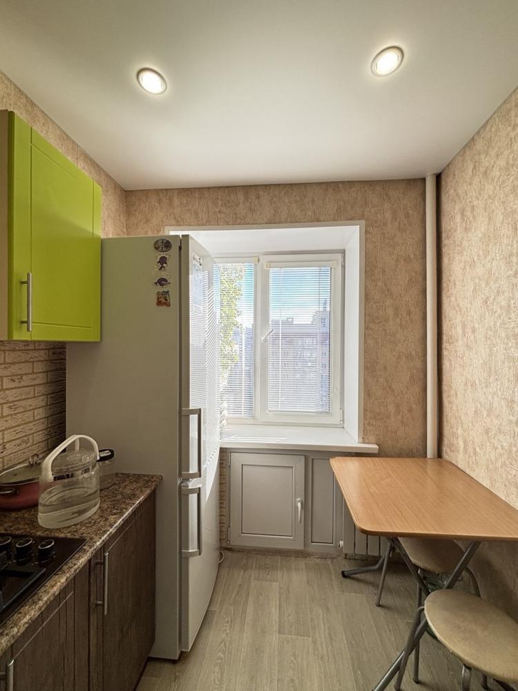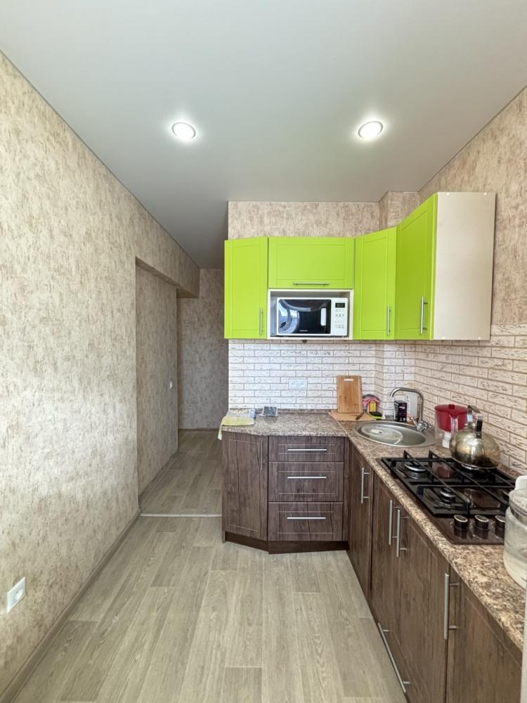 Кухня оборудована мебелью и бытовой, которая остаётся новому владельцу.