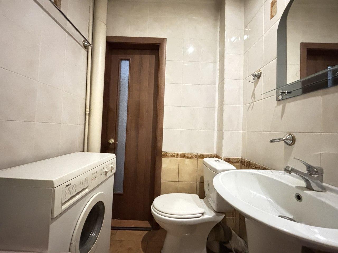 Санузел выложен современным кафелем, оборудован импортной сантехникой, стиральной машиной.