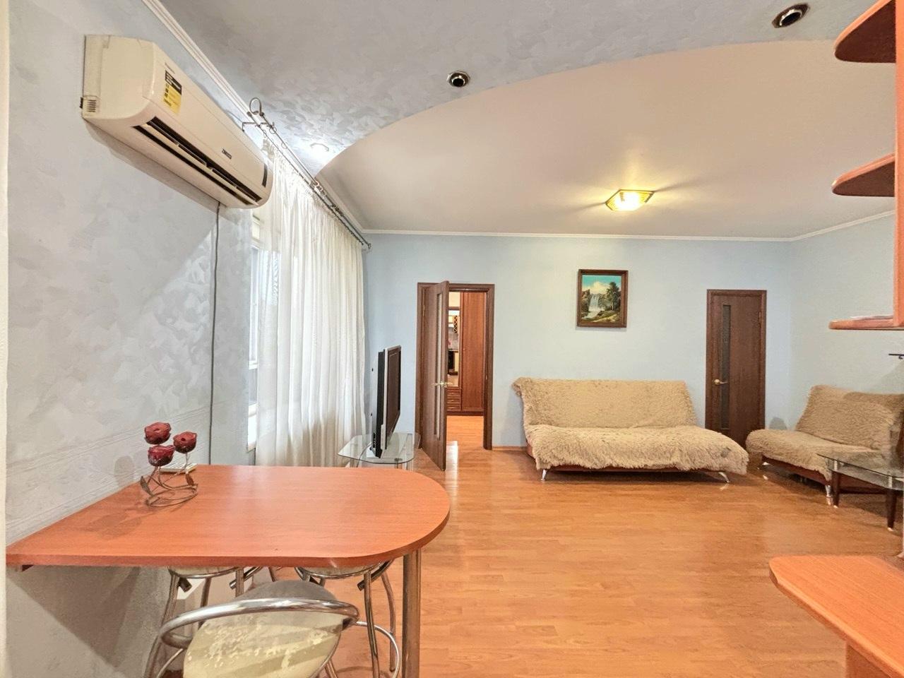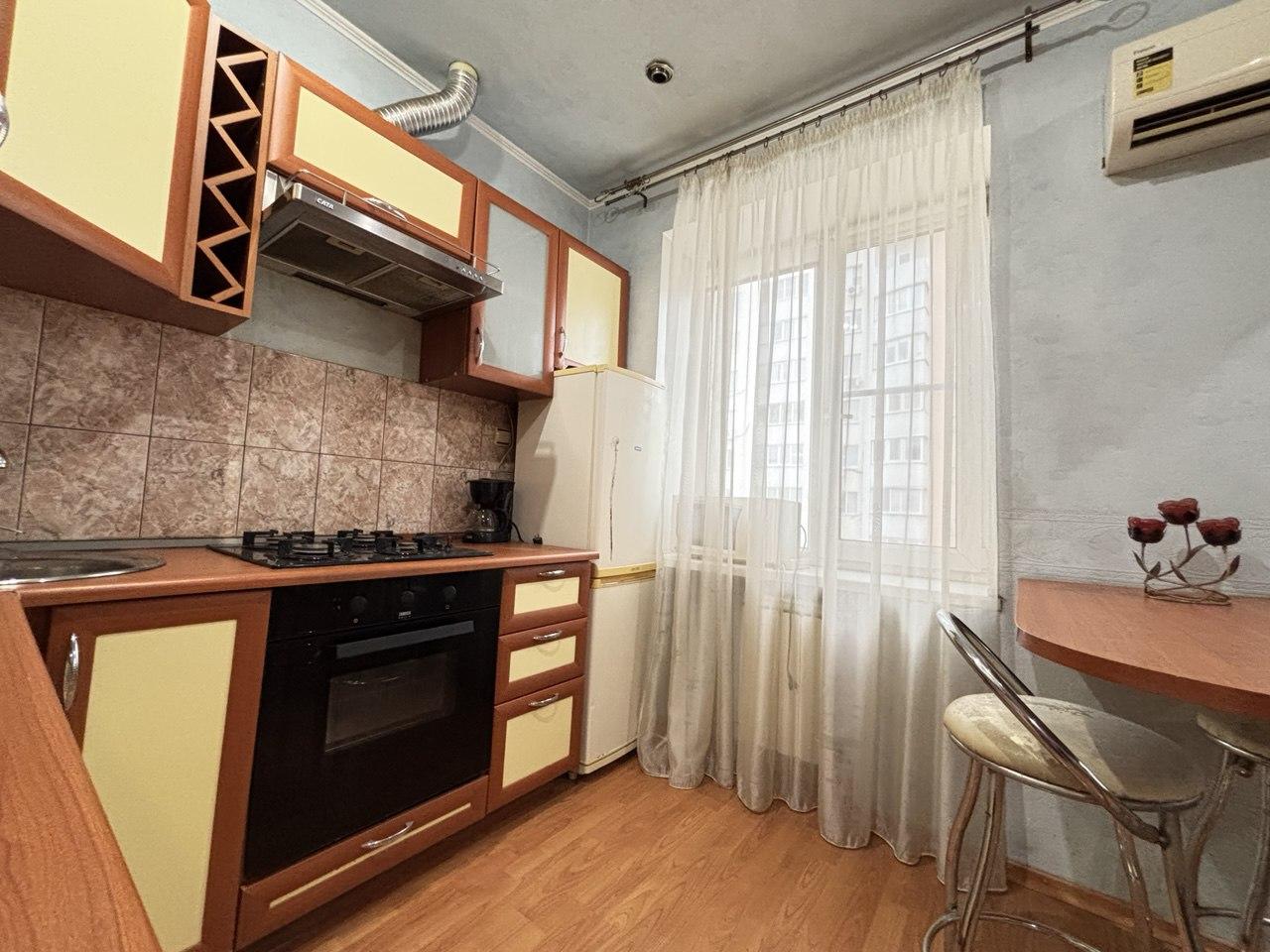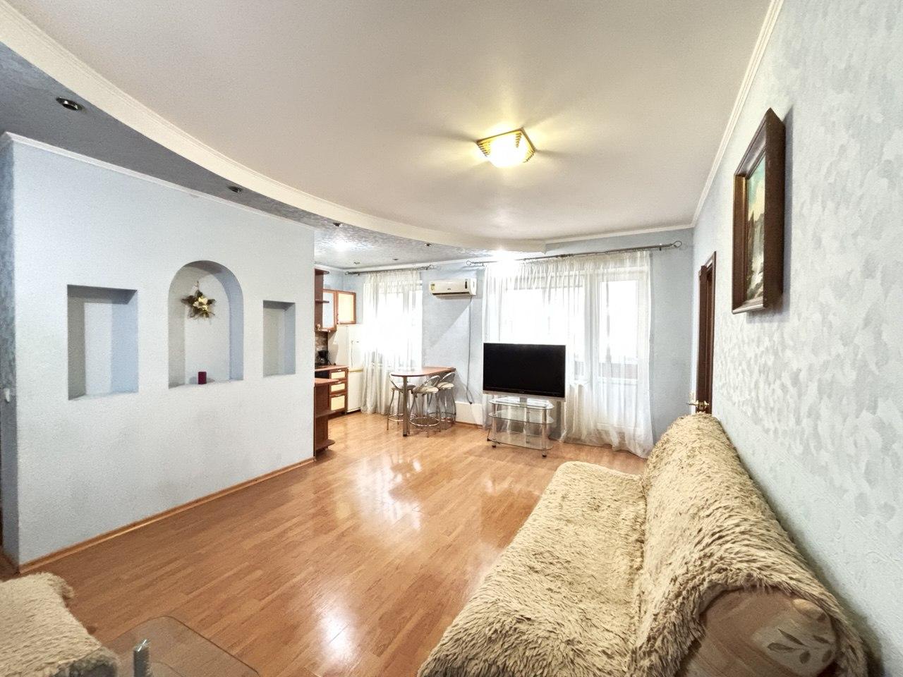 Кухня-гостиная оборудована мебелью и бытовой техникой (вытяжка, газовая варочная панель, электрический духовой шкаф, микроволновая печь, холодильник, кондиционер), которая остаётся новому владельцу.