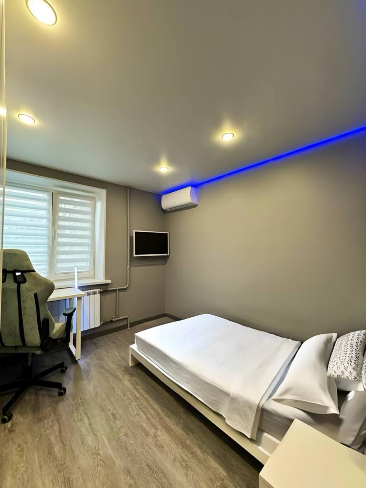 Трехкомнатная квартира на 4-м этаже 9-этажного кирпичного дома в центре города. Комнаты изолированы, на две стороны (во двор и на Бахметьевскую). Окна пластиковые, на полу линолеум. Лоджия застеклена. Установлены две сплит-системы.