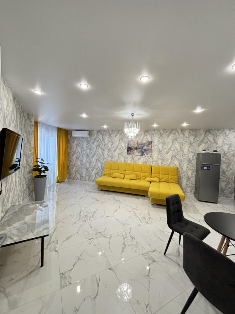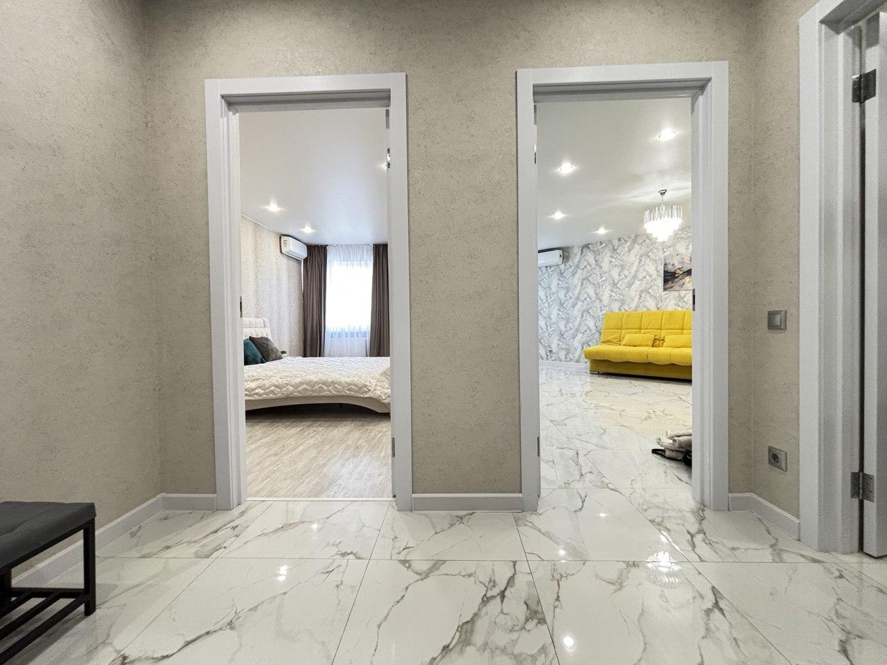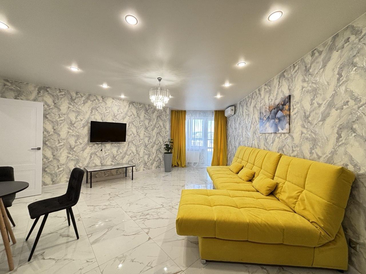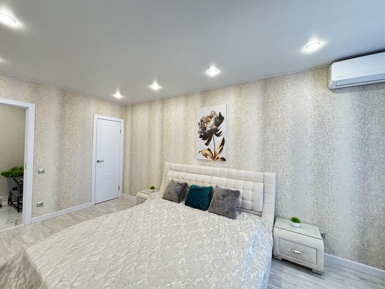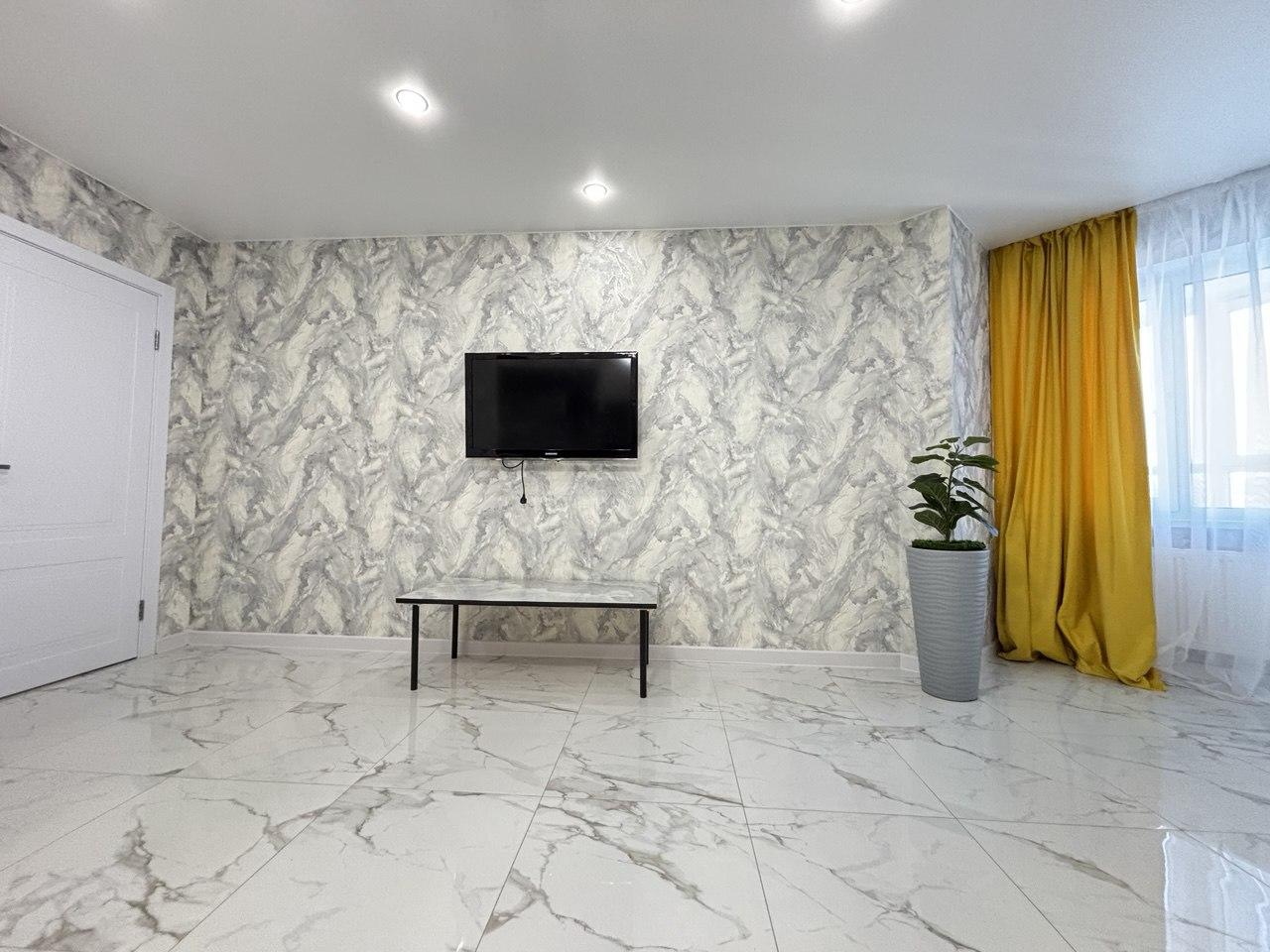 Квартира с прекрасным видом на город от Кумысной поляны до Журавлей, состоит из кухни-гостиной, спальни с гардеробной, санузла и прихожей.