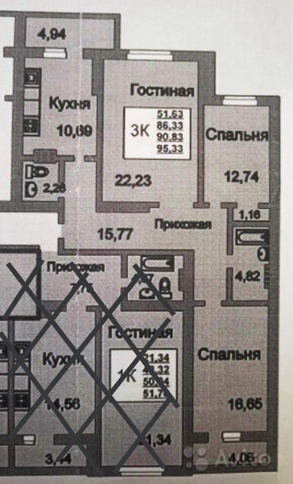 Площадь по документам 86.3 кв.м. + две лоджии.