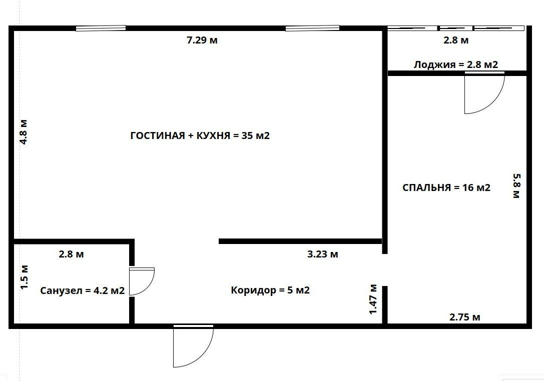 • Лоджия: 2,8 м2 — застеклена, утеплена.