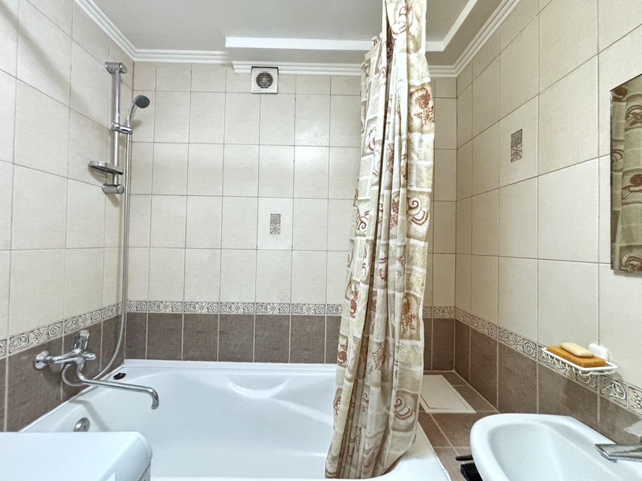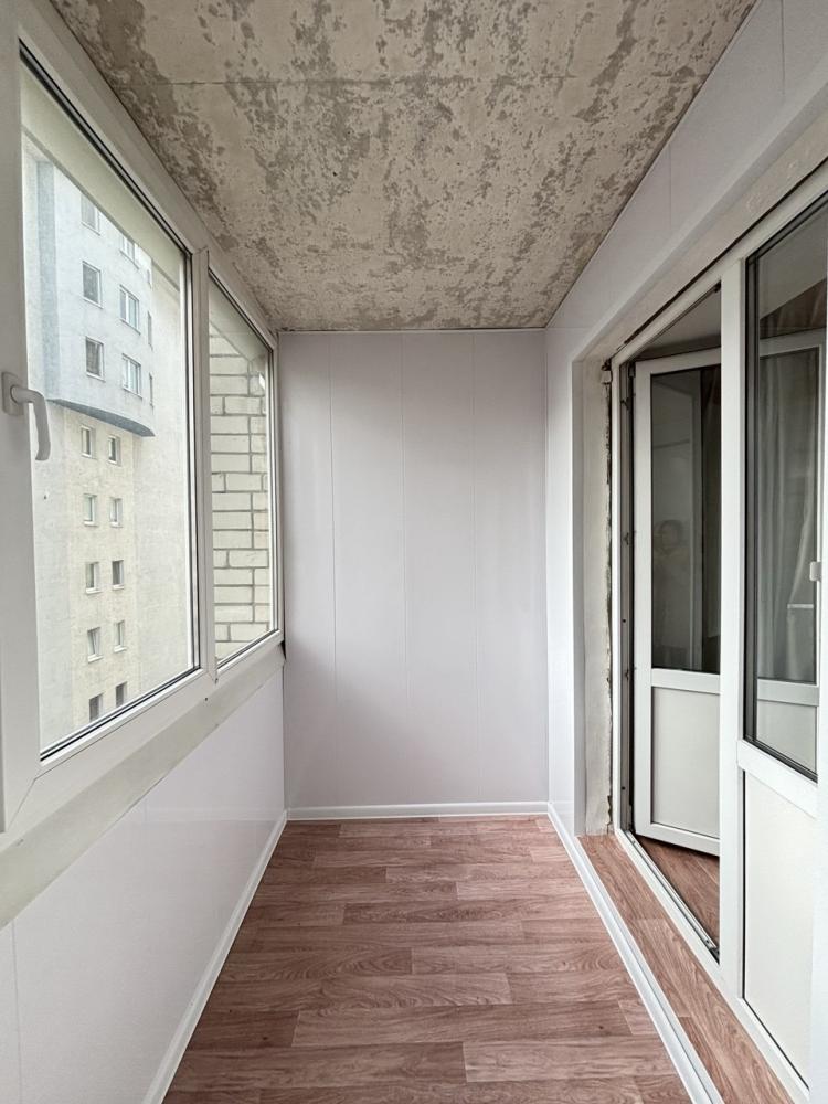 В квартире косметический ремонт с применением современных строительных материалов, напольное покрытие - линолеум, потолки натяжные, окна пластиковые, входная металлическая дверь фирмы ТОРЭКС.